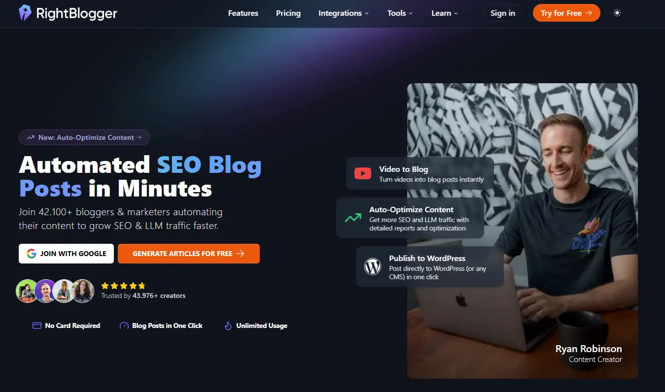 - 70+ Tools Built for Creators: RightBlogger’s tools cover everything content creators need, from keyword research to ideation, and blog post writing.